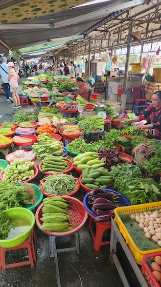 After a delicious ‘sail away’ dinner – all the meals were great, with choices of local or ‘western’ dishes – and a slow, quiet overnight journey upriver, we spent our first day in the market town Sa Đéc, one of the places French novelist and playwright Marguerite Duras lived.